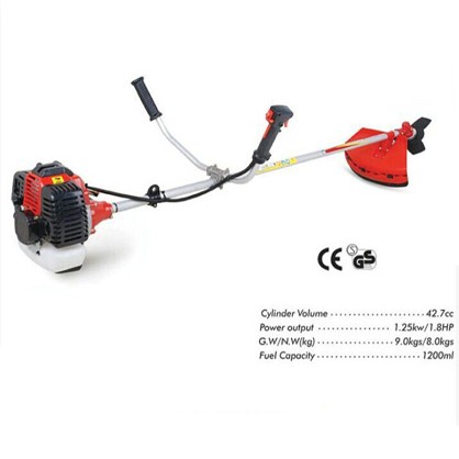Brush Cutter is a machine tool used for mowing the lawn, vegetation, which is composed of a cutter disc, engine, a walking wheel, a walking mechanism, a blade, a handrail, a control part. The knife wheel arranged on a walking wheel, the cutter head is provided with an output shaft of the engine, the engine is mounted on the engine blade, high speed rotation speed improved a lot in the blade, saves operation time weeding of workers, reduces the amount of human resources